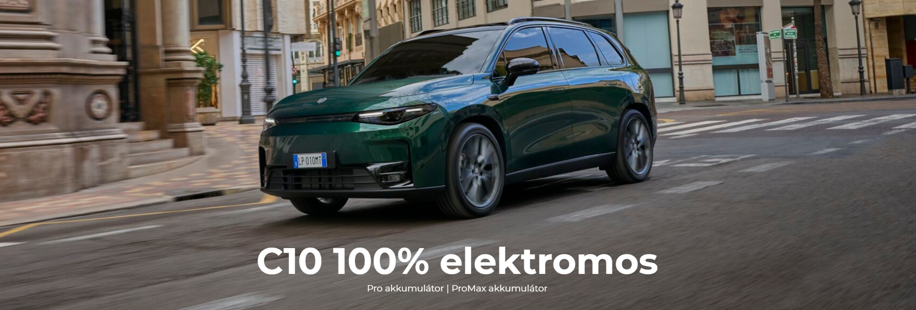 ** Jelen ajánlat új elektromos Leapmotor C10 Elektromos (EV) modell esetén a pályázati feltételeknek megfelelő és nyertes pályázattal rendelkező jogi személyek által gyártásba leadott és visszaigazolt megrendelésekre érvényes, az akcióban részt vevő márkakereskedésekben. A bruttó 10.590.000 Ft-os ár Leapmotor C10 BEV modell alapfelszereltségű Life Pro verziójára vonatkozik, Zománczöld fényezéssel, opciók és forgalomba helyezési költség nélkül, állami támogatás igénybevétele esetén. A feltüntetett ár a maximális ügyfélkedvezménnyel és a 4 millió forintos állami támogatással már csökkentett árat jelöli. A jelen ajánlat más akcióval vagy kedvezménnyel nem vonható össze. Ajánlataink 2025.11.25. napjától visszavonásig, illetve a pályázat keretösszegének kimerüléséig, vagy a támogatható gépjárművek maximális darabszámának eléréséig, de legkésőbb 2026. április 15. napjáig érvényesek. A kép illusztráció, a tájékoztatás nem teljeskörű és nem minősül szerződéses ajánlatnak, továbbá az F Automobil Import Kft. fenntartja a kondíciók változtatásának, valamint az akció visszavonásának jogát. Részletekért forduljon a Leapmotor márkakereskedésekhez.